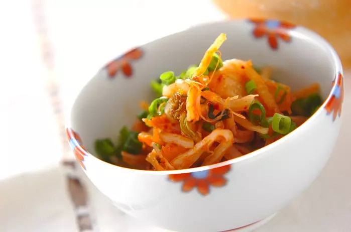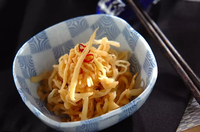 しっかり噛むことで満足感が得られるサキイカ。おつまみレシピの中でも特に低カロリーなので罪悪感なく食べられます。