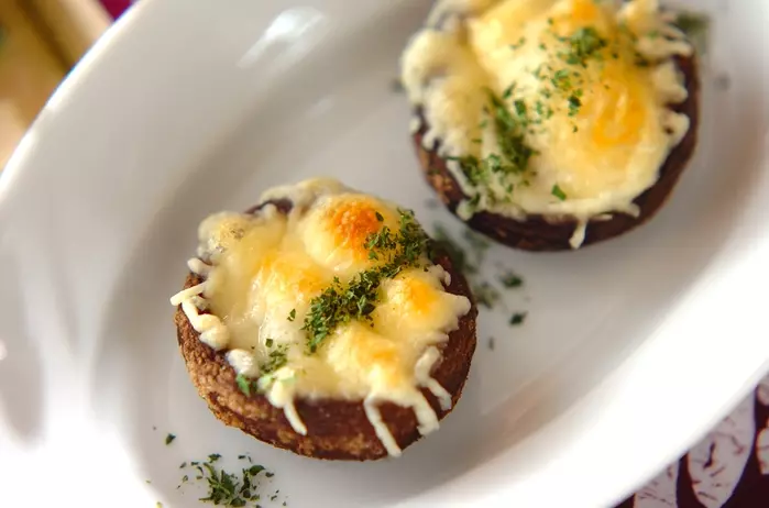 しいたけの旨味とアンチョビの塩味をチーズでフタをした魅力的なおつまみ。ダイエット中でもチーズの味を楽しめる一品です。