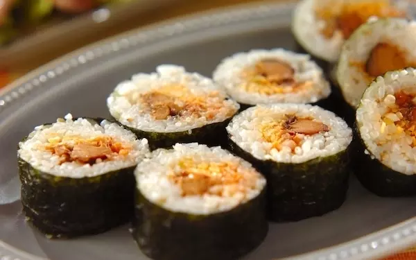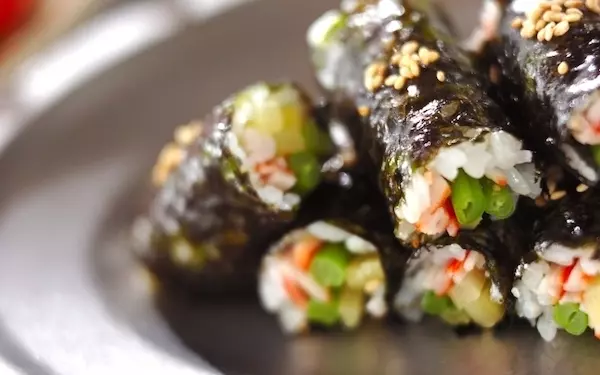 子どもも人気のキンパがコレ! キンパとは、ご飯を意味する韓国のり巻きのこと。簡単で彩りも良く、食べ応えのある一品です。お弁当に入れても良さそう。