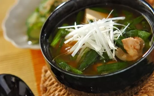 韓国では栄養豊富なお粥がよく食べられています。野菜たっぷりの鶏粥に、韓国テイストのネギを添えていただきましょう。体が温まる一品です。