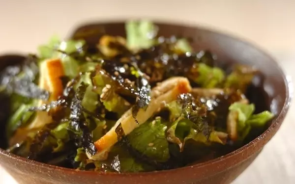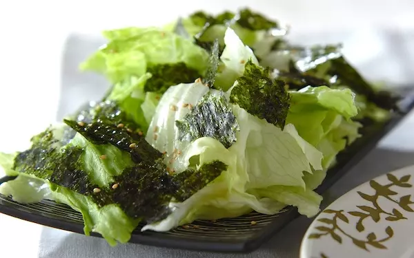 熱したゴマ油をレタスにかけるだけで完成です。韓国のりの良い香りが食欲をそそります。シンプルで子どもから大人まで食べやすい一品です。
