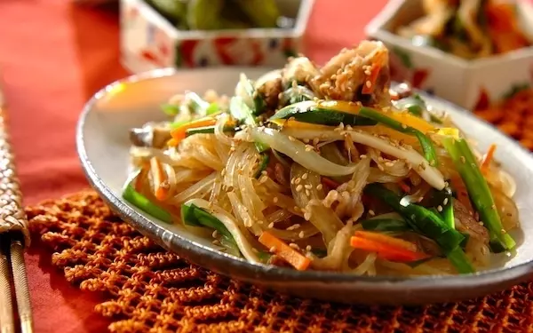 余りがちな焼肉のタレで気軽に作れるチャプチェ。簡単なのに本格的な甘辛に仕上がります。ごま油の香ばしさがたまりません。野菜たっぷりなのも魅力です。