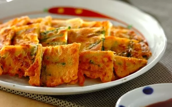 上新粉を使うことで、モチモチの食感のチヂミに。ニラとキムチ、チーズを加えて食べ応えも十分。リピートしたくなる美味しさです。