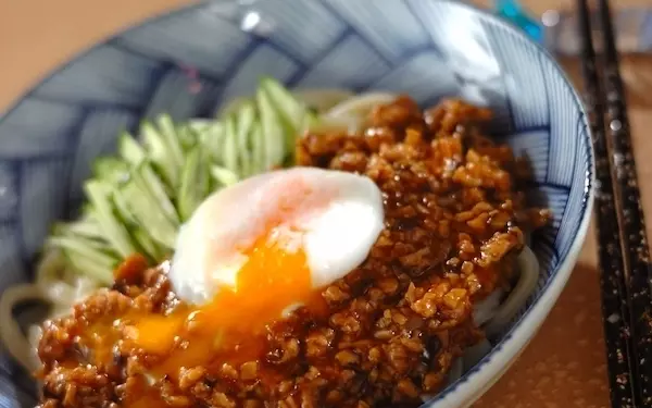 自宅にある材料で作れる、肉味噌とうどんのジャージャー麺です。たっぷりのキノコでヘルシー&コクのある味に仕上がります。うどんがなければ中華麺で代用可能です。