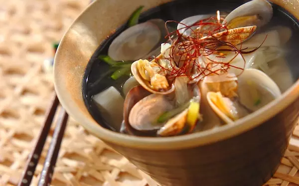 韓国の大衆の味を自宅でも。平打ち麺にアサリの旨みが効いただしがやみつきになります。油揚げなどをプラスして、ボリュームアップしても良さそうです。