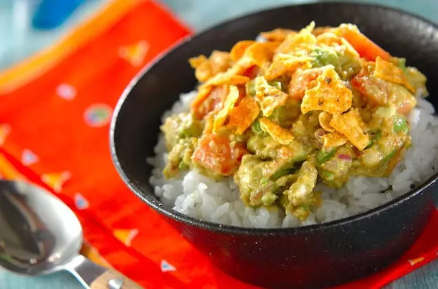 栄養価の高いアボカドを使ったメキシコ料理の「ワカモレ」を丼に。スパイシーな香りが食欲をそそります。