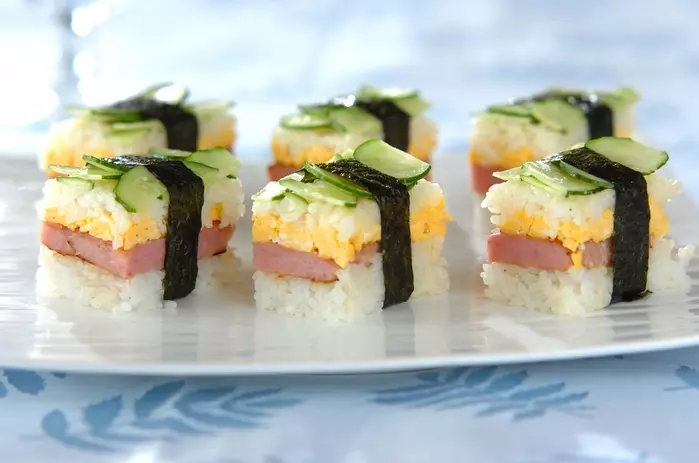 さっぱりした「リチャム」はキュウリや卵と合わせた押し寿司にぴったり。押し寿司は握る手間がないので実は簡単に作れます。上品な味でおもてなしに喜ばれる一品です。