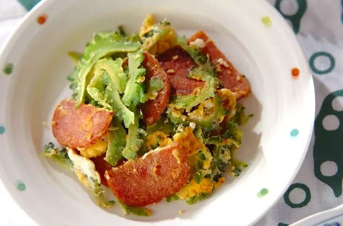 ゴーヤの苦みをポークランチョンミートが補う夏らしい炒め物。豆腐やモヤシをプラスしてかさ増しすると食べ応えアップします。炒めても脂っぽくない「リチャム」を使うとさっぱりした仕上がりに。