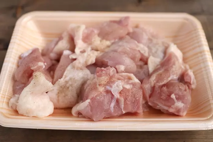 1、鶏肉と玉ねぎを袋に入れ片栗粉を全体にまぶす。