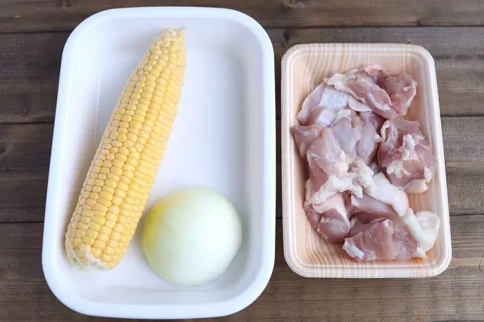 とうもろこしは揚げ焼き、鶏肉と玉ねぎはバター醤油で炒めることで、カリカリ食感と香りを楽しめるようにしました。別で調理することで、それぞれの芳ばしさを最大限に引き出しています♪
