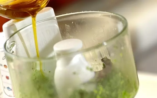 自宅にフードプロセッサーがない場合は、すり鉢で丁寧にすり潰して作ることもできます。松の実は、クルミやアーモンドで代用可能です。