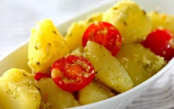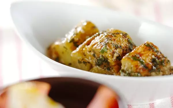 ジャガイモの大量消費にも役立つこちらのレシピ。ジャガイモとプチトマトを相性の良いバジルソースで和えます。ワインのおつまみにもピッタリなほか、肉料理に添えても良さそうです。