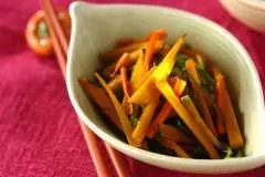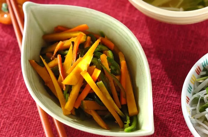 ゴマ油で炒めてきんぴらにするとカボチャの甘さが引き立ちます。シャキシャキした食感を生かすためにサッと炒める程度でOKです。