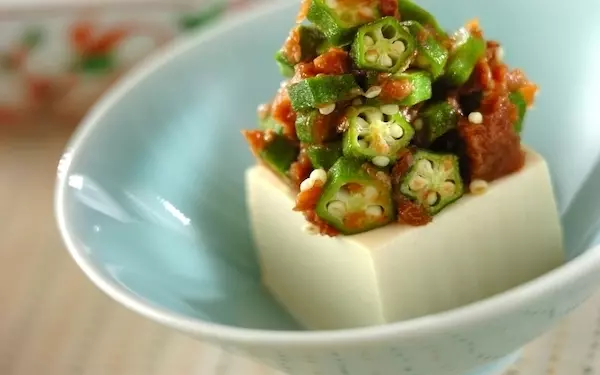 ネバネバオクラと梅で、さっぱりと味わえる冷奴です。夏バテ気味のときや食欲があまりわかないときにも良さそうな一品。オクラの消費にも役立ちますよ。