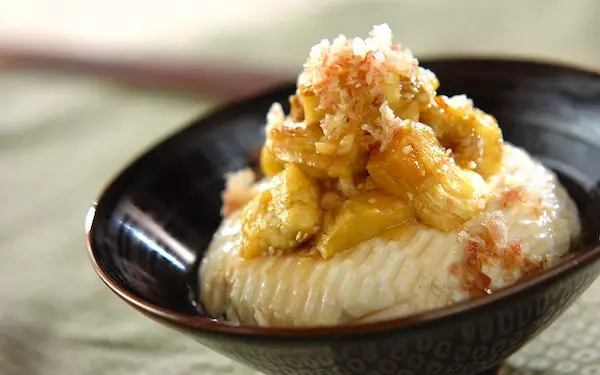 焼きナスをトッピングした冷奴。冷たい豆腐と温かいナスが絶妙にマッチしています。ボリューム感があるため、ダイエット中に食べるのもオススメです。