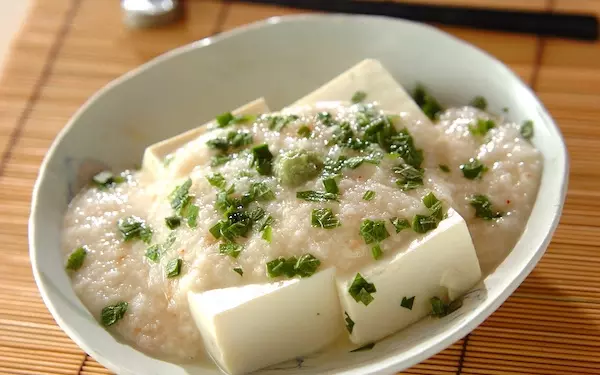 豆腐に豆乳をかけていただくユニークな冷奴です。クリーミーな味わいで、食べやすいのが魅力。よ~く冷やした豆腐・豆乳で作ると最高です。