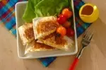 ・フライパンに半量のバターを弱火で溶かし、具をはさんだパンを入れ両面を2~3分焼き色がつくまで焼く。半分に切り、器に盛り付ける。