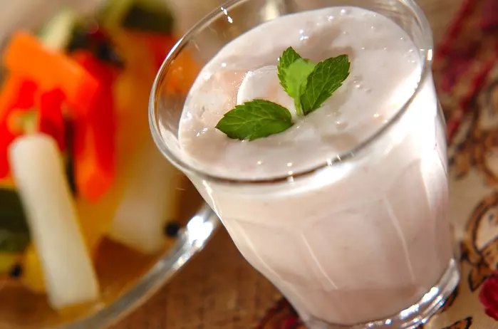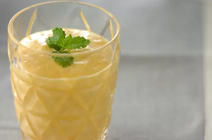 プレーンヨーグルトと牛乳を混ぜて作るラッシー、マンゴーをプラスしたマンゴーラッシーはスパイスが効いたカレーのお供に最適です。砂糖の量はお好みで調節してくださいね。