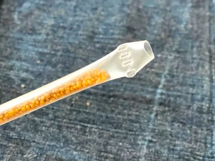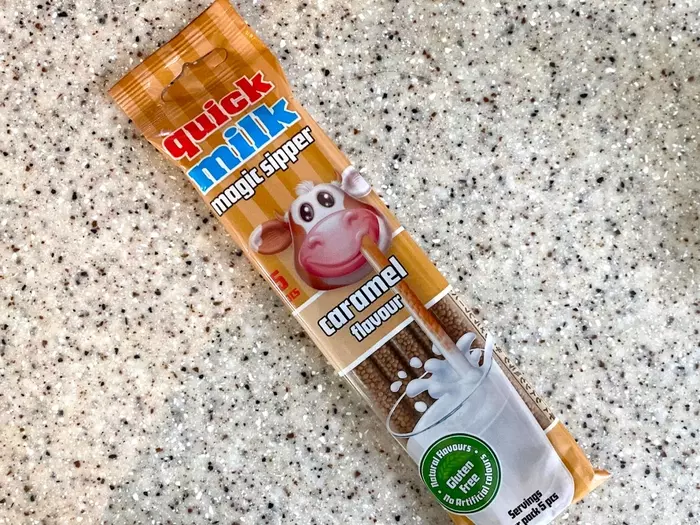 ミルクに粒を入れるのかと思ったらフレーバーの粒が入ったストローを牛乳に差してそのまま飲めばおいしい牛乳ドリンクに!