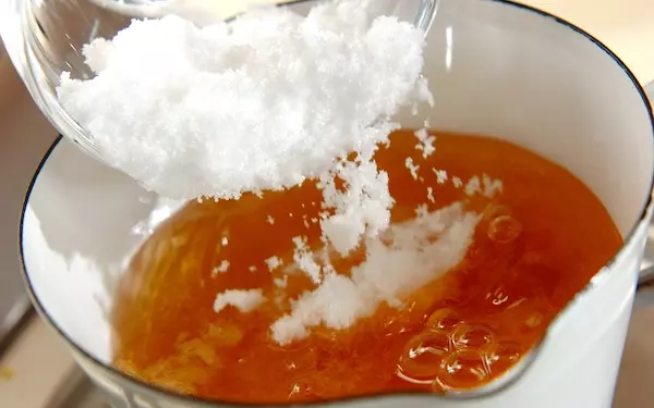 1、材料を全て小鍋に合わせ、一度煮立てて、砂糖が溶けたら火を止める。常温になるまで冷まし、保存瓶などに入れて冷蔵保存する。