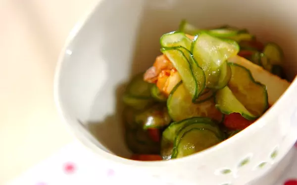 合わせ酢にさつま揚げ、キュウリを混ぜ合わせるだけで作れるこちらのレシピ。甘酢とショウガでさっぱりとしていて食べやすいのが魅力です。キュウリのシャキシャキ食感もお楽しみください。