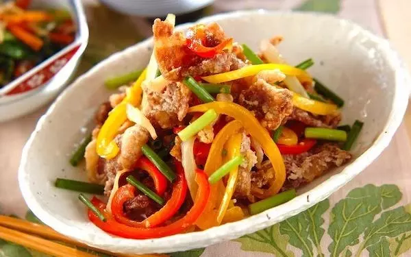 カリカリの豚肉に甘酢がよくからみ、一度食べ始めたら止まりません。こちらのレシピでは、玉ネギ、赤パプリカ、黄パプリカを使っていますが、ピーマンに代えたり、キノコ類などを加えても良さそうです。