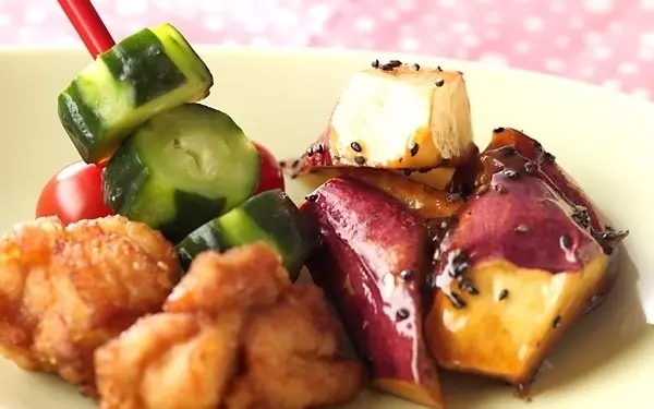 甘酢を使った鶏の唐揚げと、みんなが大好きな大学芋を一度に作れます。下味に甘酢を入れることで、程よい酸味がプラスされ、さっぱりとした唐揚げに。食卓に並んでいたら、家族のテンションが上がりそうな料理ですね。