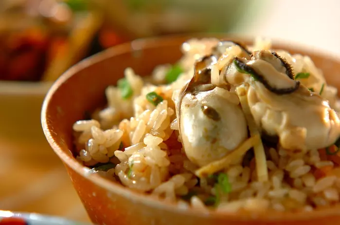 海のミルクと呼ばれるミネラルや亜鉛たっぷりの「牡蠣」の炊き込みご飯。牡蠣の旨味がご飯にじわーっと染み込んで滋味深い味わいです。