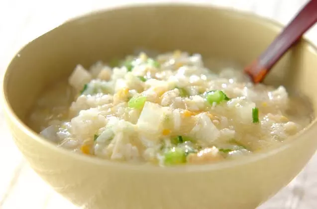 ダイエットや疲れた体にピッタリのだいこんとキノコが入ったおかゆです。炊いたご飯から作るので、難しく考える必要なし!長さのあるエノキは、石づきを切り落とし、長さ1cmに切ればご飯と美味しく合わさります。