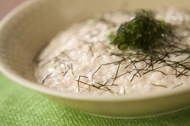 食べすぎや夜遅い夕食が続いてるときの朝ごはんに、ピッタリのおかゆです。鶏そぼろや大根葉の塩もみをトッピングにして、お粥を楽しんでくださいね。お米から炊くお粥は口当たりも甘みも違いますよ。お米は水に長時間つけても大丈夫なので、前日に準備を!