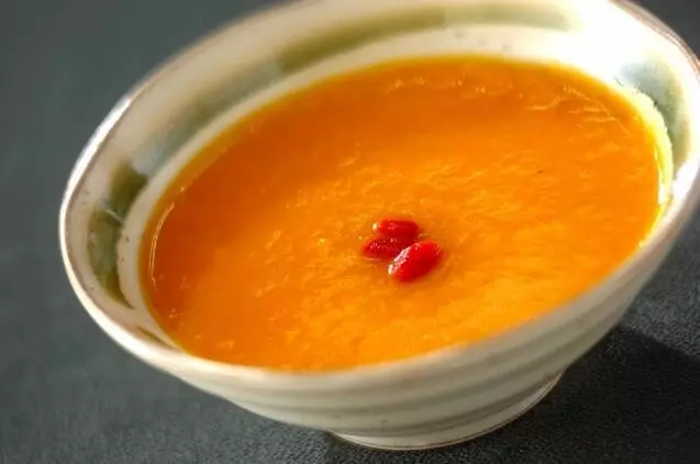 お粥とは穀類や芋類を多めの水で柔らかく煮たものという見方から、かぼちゃや白玉粉などで作りました。カボチャの甘みが身体にしみわたる、シンプルなスープ風のお粥です。15分で作れるので、普段の食卓にも取り入れられそうな便利な一品です。