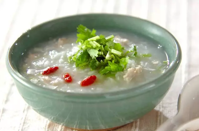 余ったご飯から作れる、簡単お粥です。ご飯を加えて強めの弱火で15分コトコト、ご飯が3倍くらいになるまで煮ましょう。ゆっくり炊くと、お米の形が崩れて消化されやすく、血行促進にもつながります。パクチー好きの方にもおすすめのおかゆです。