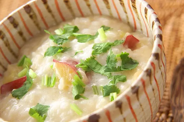 カボチャや白玉粉などで作った、体にやさしいおかゆです。消化が良く、ビタミンもたっぷり!食欲がない時、朝ご飯や夜食にもおすすめです。お腹を整えたい時に、スープの代わりとしても便利です。食卓のルーティーンに入れてみても良いかもしれません。