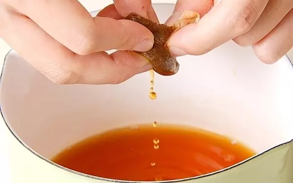・<紅茶液>を作る。紅茶液の煮立った熱湯にティーバックを入れて濃く出し、ティーバックを押さえてしっかり絞り、冷ましておく。