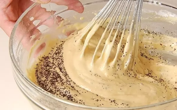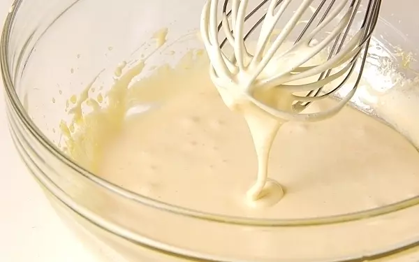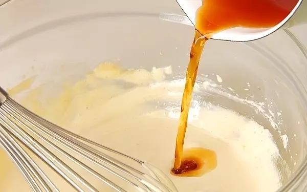 2、紅茶液80mlを少しずつ加えながら混ぜ合わせ、紅茶リキュール大さじ1を加え、更によく混ぜ合わせ、サラダ油を加えて、さらによく混ぜ合わせる。