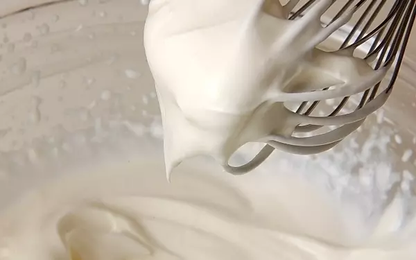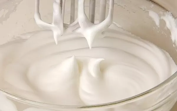 泡立てたボウルをひっくり返しても落ちてこないくらいまでしっかり泡立てます。