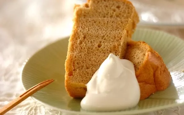 ふわふわ生地の秘訣は粉の種類。こちらのレシピでは、コーンスターチを使います。ほうじ茶風味で和風な仕上がりに。クリームは黒糖でほんのり和風。一口頬張ると、フォークが止まらなくなるシフォンケーキです。
