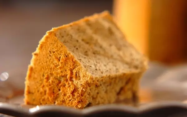 カボチャの甘みがやさしく口内に広がるシフォンケーキです。しっとり、ふんわりとした食感を堪能できます。カボチャを入れると膨らみにくいので、生地の量を多めにすると◎。カボチャがほくほくしていて水分が少ない場合は、牛乳の量を少しだけ増やしましょう