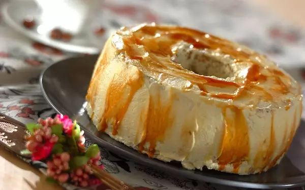 全卵で作るシフォンケーキです。コーヒーのほろ苦さとキャラメルシロップのハーモニーを楽しめます。仕上げに、キャラメルシロップをスパテラの先につけて、ところどころに塗ってくださいね。見た目から美味しいケーキになります。