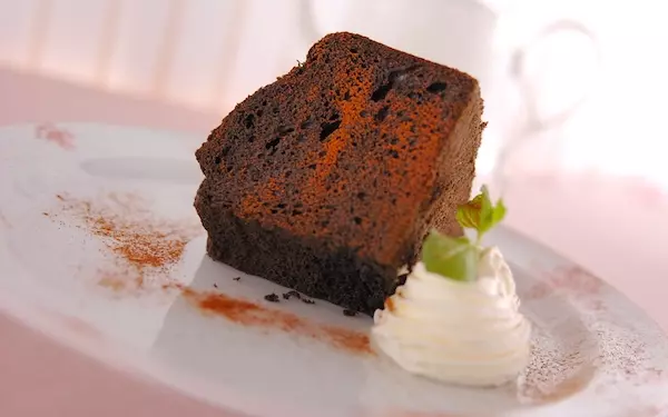 スイートチョコレートを使った濃厚なシフォンケーキ。ブランデー入りで少し大人な味わいです。子どもが食べる場合は、ブランデーを省いて作った方がいいかもしれません。最後にココアを茶こしなどで全体に振りましょう。
