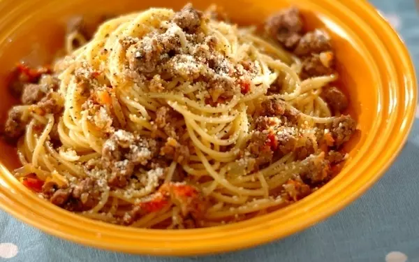 ボロネーゼとはイタリアボローニャ地方発祥の煮込みソースのこと。リストランテのようなお肉たっぷりの贅沢なパスタを自宅で手軽に再現できます。合いびき肉はあえて崩さず野菜と共に炒めると、濃厚でコクのある絶品ソースに。平たいパスタ「タリアテッレ」を使うと、より本場の味に近づけます。