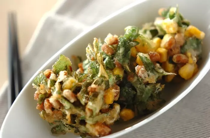 生で食べることが多い納豆ですが油で揚げるとメインおかずに大変身。春菊の代わりにニラや大葉でも美味しく作れます。そのまま食べたりおそばに乗せたり、色々楽しめる一品です。
