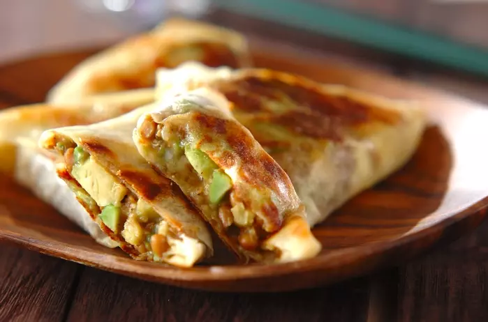 栄養価の高いアボカドと相性が良い納豆。チーズも一緒に春巻きの皮で巻いて焼き上げた一品はお酒のおつまみやお子さんのおやつにぴったりです。揚げないのでヘルシーに食べられます。