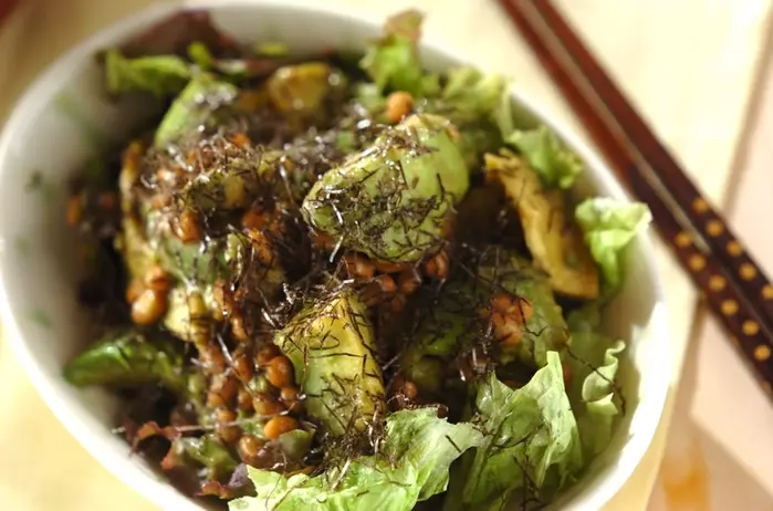 市販の納豆を使うだけ。特に味付けの必要なく美味しくて食べ応えがあるサラダが完成します。餃子や煮魚などの副菜にオススメです。