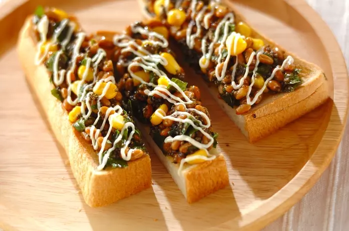 マヨネーズと納豆の意外な組み合わせがパンに見事にマッチします。カリウムが豊富な納豆は体内の余分な塩分を排泄してくれるのでむくみ防止になります。忙しい日の朝ごはんにオススメですよ。
