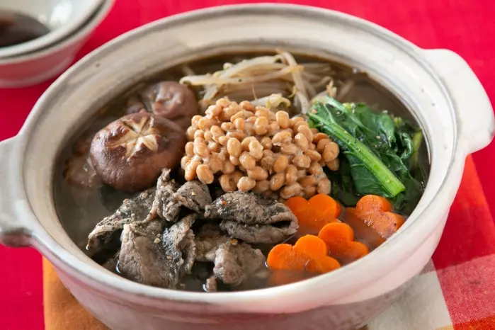 葉酸が豊富な納豆とブロッコリー、ビタミンB12が豊富なアサリを使ったバランスの良いピリ辛鍋。アサリのコクがたまらない!〆にご飯と卵で雑炊にすると美味しいですよ。