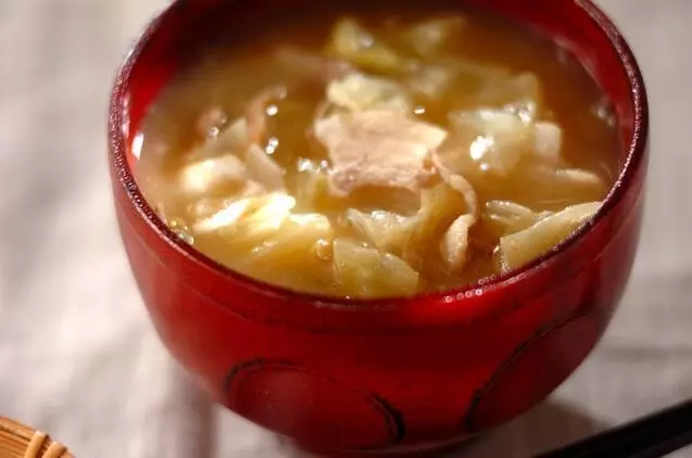 具は豚バラとキャベツのみ!簡単調理でおすすめの豚汁です。キャベツの芯も入れて柔らかく煮込んで下さい。捨てるところがないのが魅力。キャベツの大量消費や、余ったときに使い切れておすすめです。