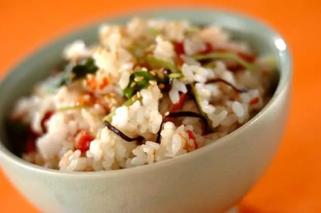 香りのよいミツバと梅干しの組み合わせで、さっぱりとした混ぜご飯です。豚汁の味付けによって、梅干しの量はお好みで調整して下さい。できるだけ炊きたてのご飯に混ぜ合わせてくださいね。