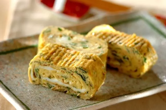朝ごはんに、豚汁とおすすめしたい卵焼きです。大葉のさわやかな香りの卵焼き。鰹節の風味もアクセントに!いつもの卵焼きに刻んだ大葉を加えれば、彩きれいで味わい豊かになりますよ。