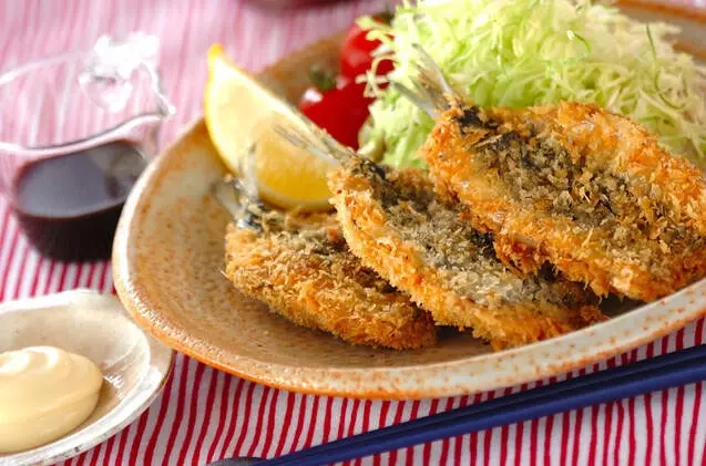 イワシは手軽な手開きで、衣をつけサクッと揚げました。栄養も豊富です。